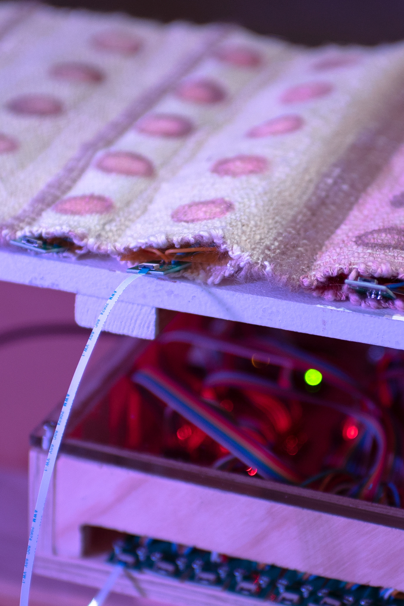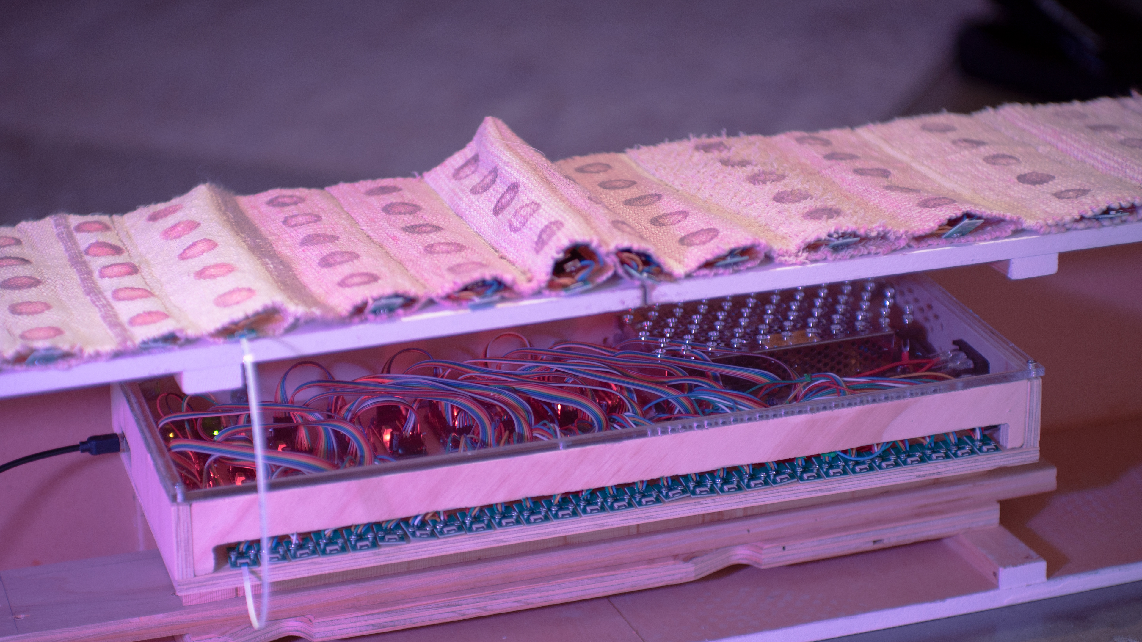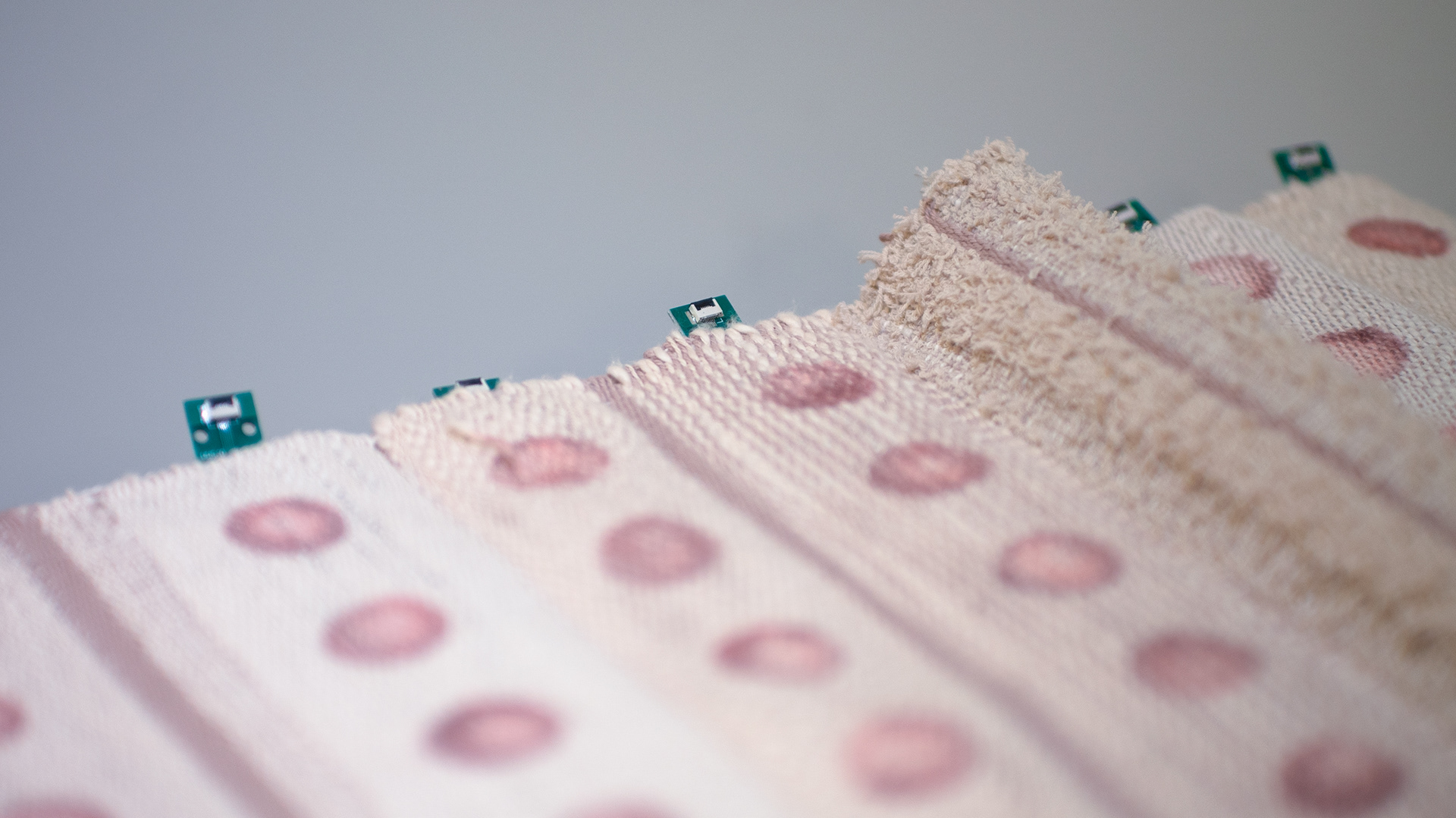 Moon Tapestry is a 28-day calendar that one can use to produce and document their daily Basal Body Temperature. Input of one’s body temperature will activate the heating elements embedded inside the tapestry, causing thermochromic patterns of moon phases to slowly emerge or disappear. Across the length of the tapestry, a temperature curve of daily moon will form. An individual knowledgeable of the symptothermal birth control method may observe from this curve important bodily events such as ovulation, menstruation, and fertility period. The tapestry is entirely offline and can remember 28 days’ of value at most.