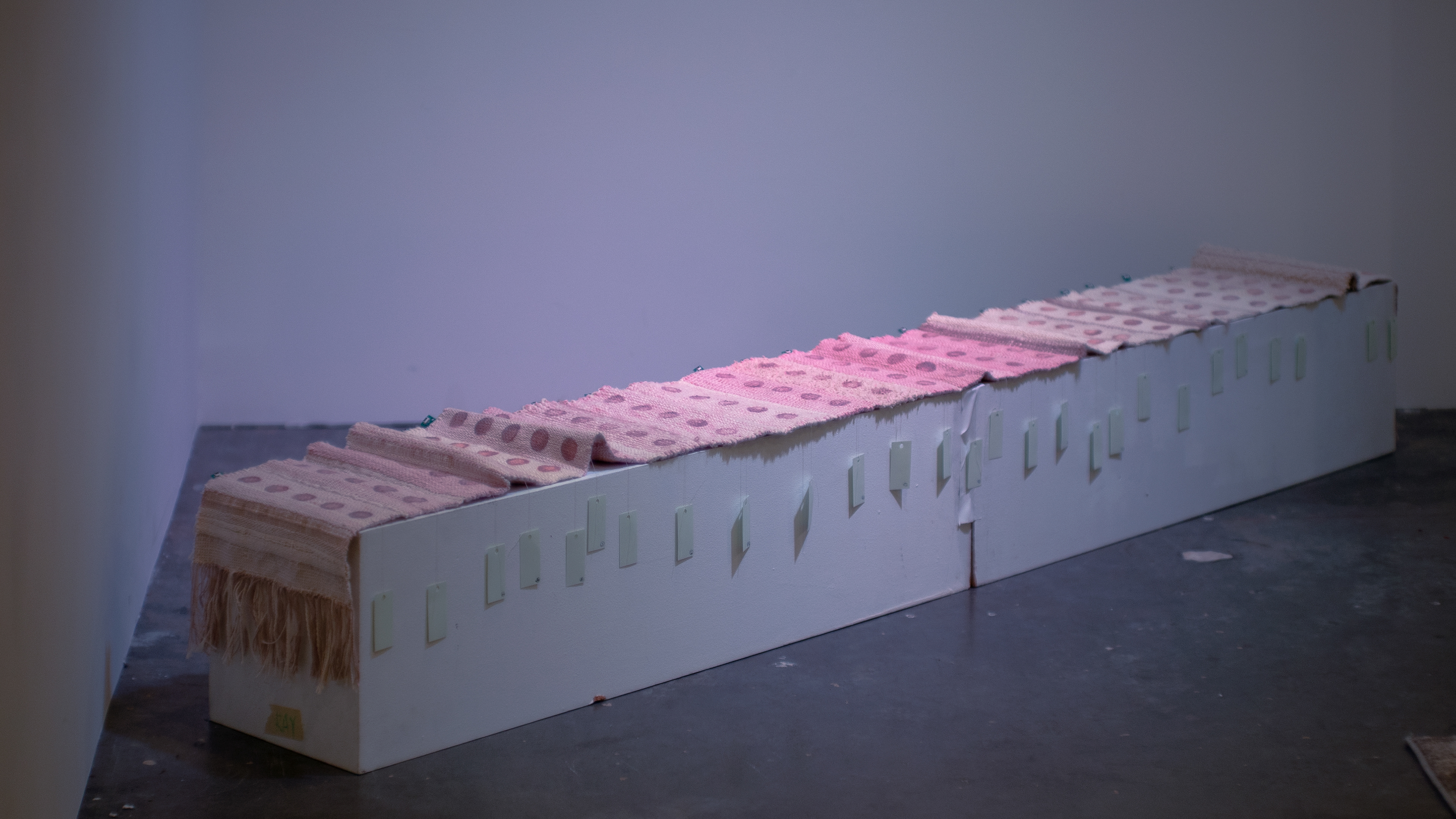 Textile making, softness and the tactile experience have for a long time been culturally associated with craft, domestic space, and women’s work. Far away from the current sleek, high-tech, cool girl ‘FemTech’ aesthetic, Moon Tapestry centers craft-based methodologies, aesthetics and embodied ways of knowing that womxn themselves are experts of. Its idiosyncrasy and intentional lack of usability invite gestures of curiosity and caring when tending to our body as it evolves through various stages of life.